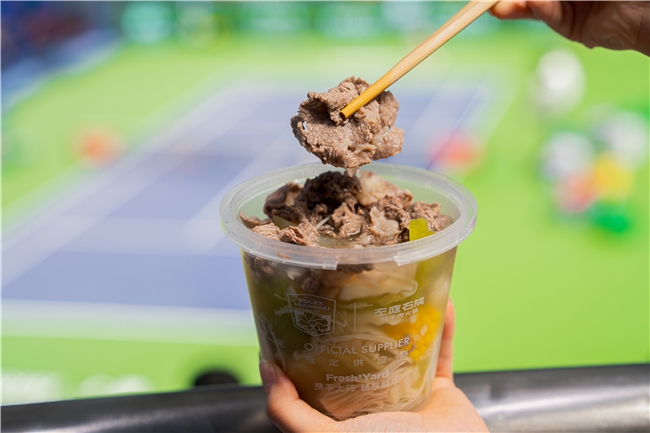 "没想到在赛场里能吃到这么健康方便的牛肉。"一位带着孩子观赛的妈妈表示,"左庭右院我们都知道,在外面经常吃,在这里看到很亲切,给孩子吃也放心。"这种"安心感",源于左庭右院一直强调的"四个自家"供应链——从自家牧场、养牛、屠场到物流,构建了"当天鲜肉,拒绝冷冻"的品质护城河。